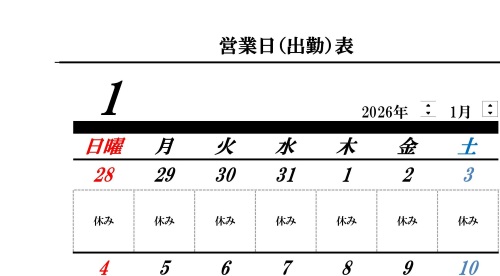 2026年1月 営業日のお知らせ