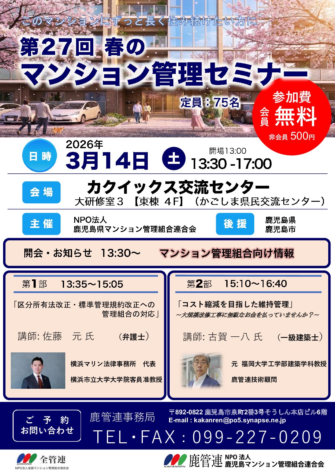 活動報告 よかったらシェアしてね! URLをコピーしました! URLをコピーしました! 2026年1月 営業日のお知らせ この記事を書いた人 鹿児島マンション管理組合連合会 関連記事 秋のマンション管理セミナー 開催 2025年9月20日 春のマンション管理セミナー開催 2025年2月22日 大規模修繕工事現場見学会の開催 2024年10月30日 第24回 夏のマンション管理セミナー 2024年7月3日 第23回 春のマンション管理セミナー 2024年3月23日 第22回 冬のマンション管理セミナー 2023年12月10日 第15期 通常総会を開催 2023年7月25日 第21回マンション管理セミナー 2023年3月14日